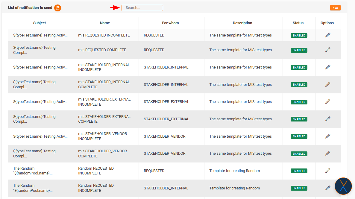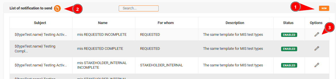 - Status: Shows whether the notification is Enabled (green) or Disabled (red)
