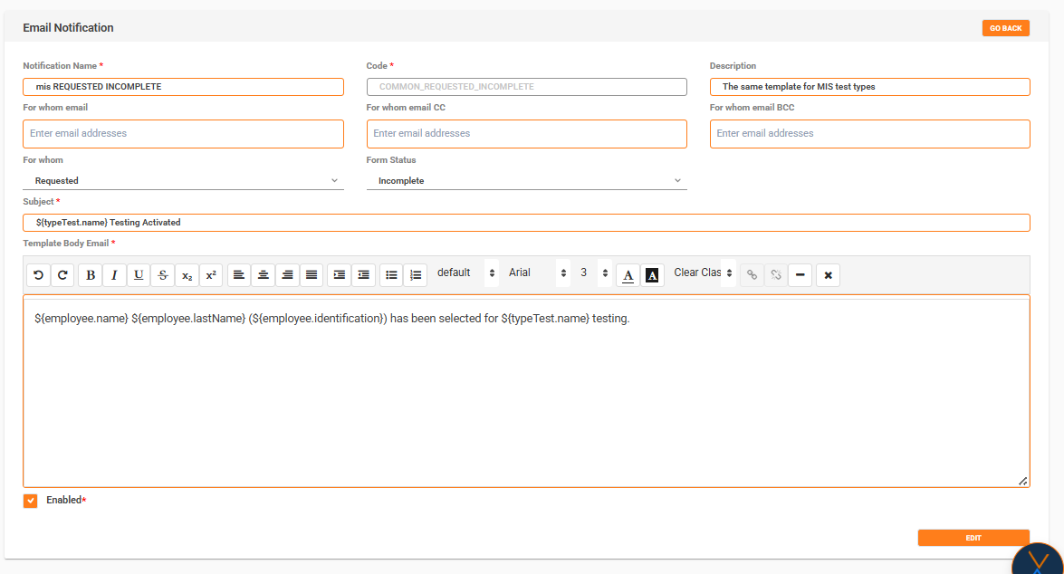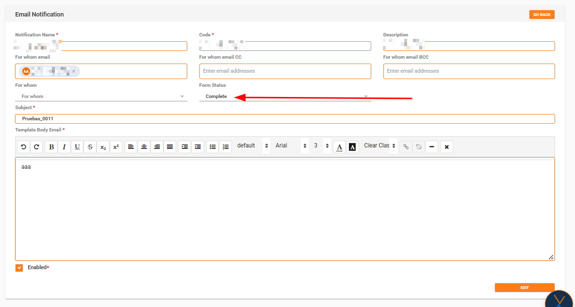 - Fill in all required fields (Name, Code, Subject, Template Body Email)