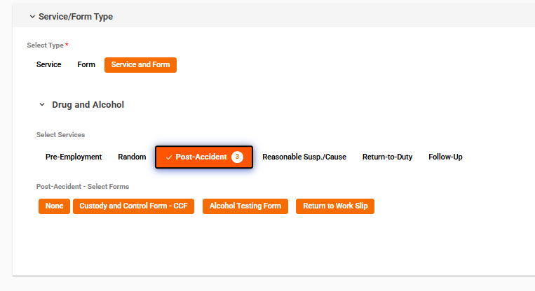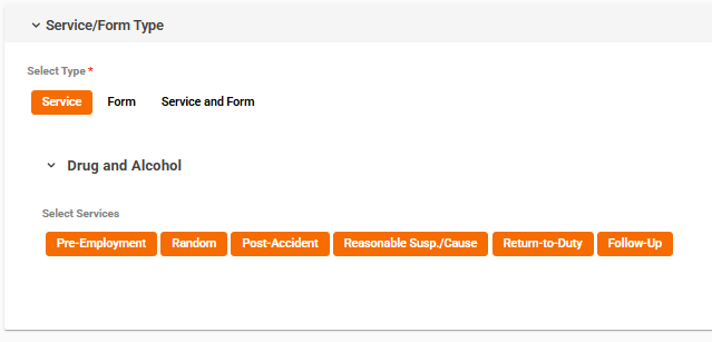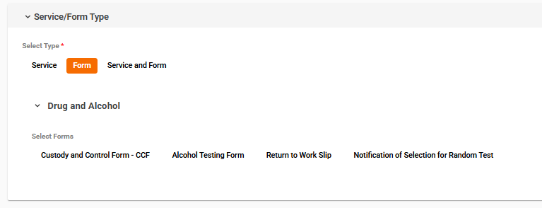 - No Service/Form Type selected → Select Service, Form, or Service and Form first