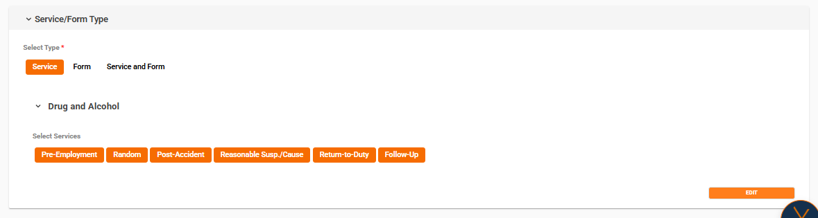 - Click EDIT (or SAVE) in the Service/Form Type section