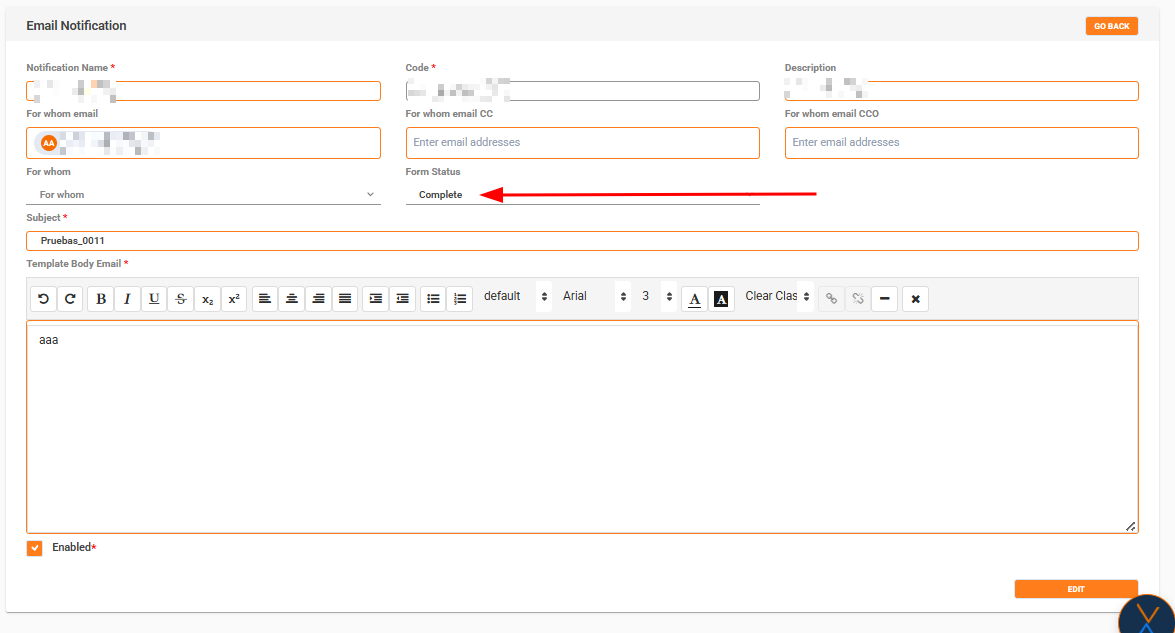- Service/Form Type configuration can only be saved after the notification is created