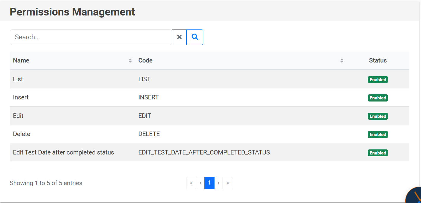 To search for a permission, click on the magnifying glass icon 🔍, and to clear the filter, use the “X” icon.